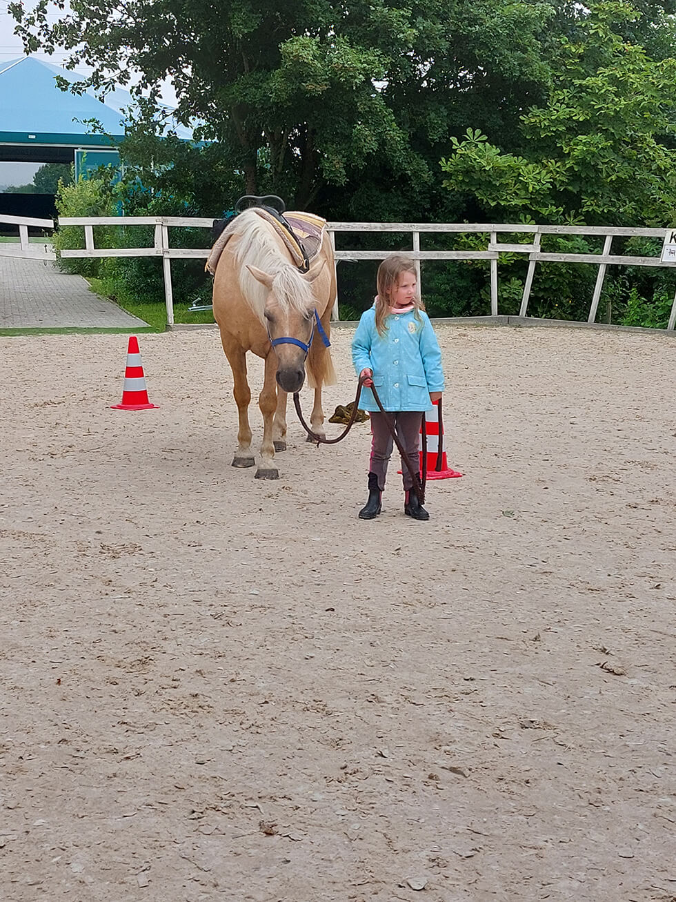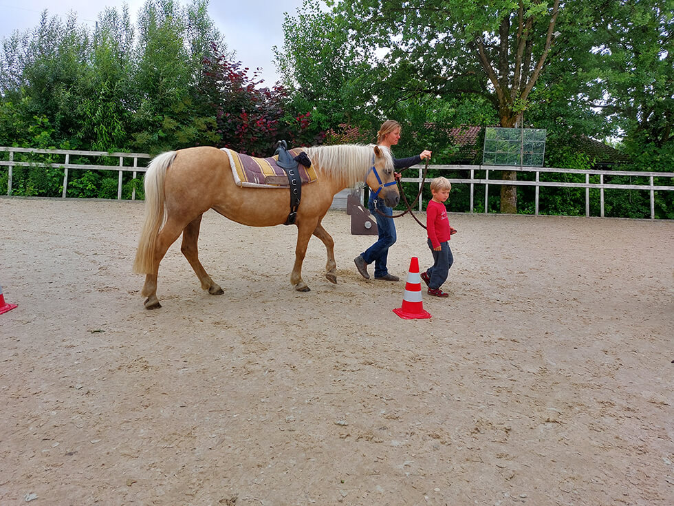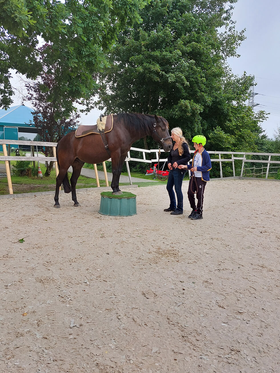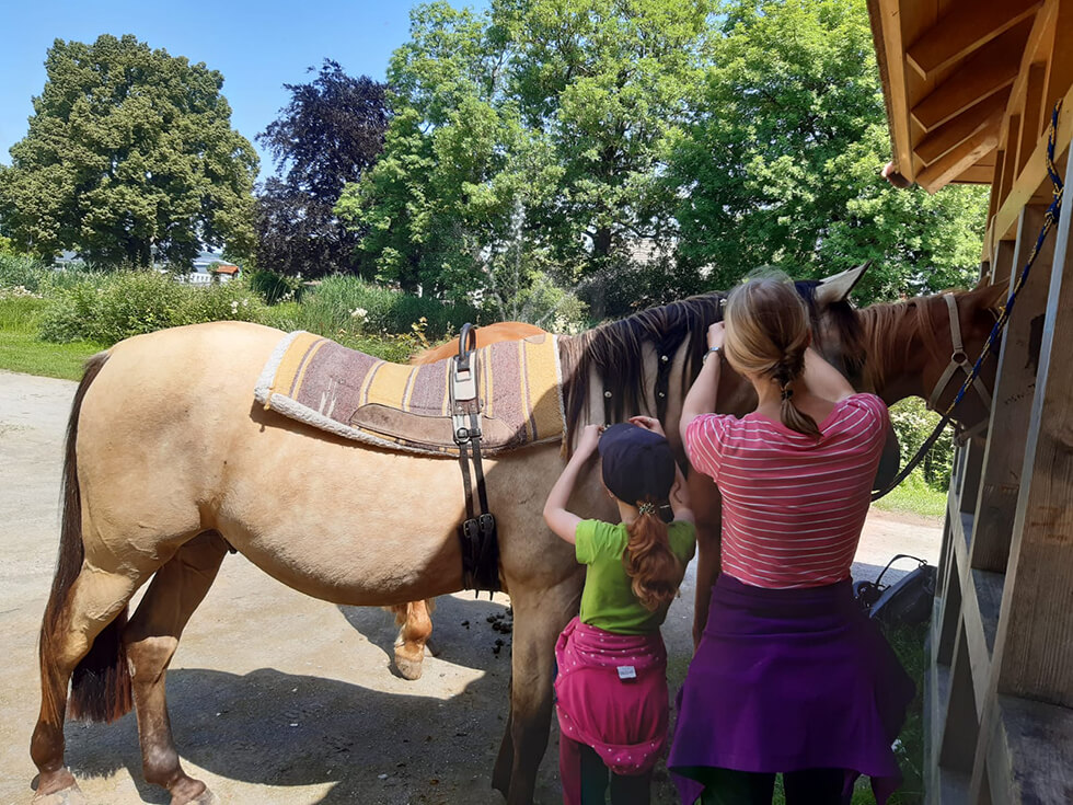 • gemeinsames Führen, Putzen, Pflegen und kleine Bodenarbeitsübungen